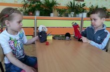 Одним из любимых развлечений детей явялется пальчиковый театр, дети играют и придумывают свой сюжет самостоятельно .Дети 5 группы -Артур и Кира "разговор Бабы Яги и Кощея Бессмертного"
