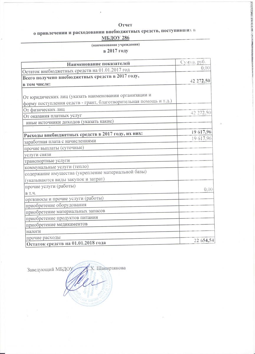 Отчет о привлечении и расходовании внебюджетных средств за 2017 году
