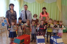 Безопасная улица 01.04.2015 В МАДОУ №222 по проекту "Безопасная улица" воспитатель Мамакова Р.Н. провела открытую НОД с детьми младшей группы "В гости к светофору". На просмотр приглашены инспектор ГИБДД и педагоги. ДОУ. На занятии малыши с удовольствием показали свои великолепные знания правильных пешеходов и поощрены памятными подарками от ГИБДД Московского района.