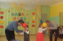 В МАДОУ состоялись праздничные развлечения, посвященные Дню защитников Отечества. На празднике принимали активное участие родители детей. Детям доставило большое удовольствие играть в веселые спортивные игры вместе со своими папами. После мероприятий дети торжественно вручили своим папам подарки, изготовленные своими руками.