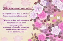 С Днем дошкольного работника 27.09.2017 С днем воспитателя мы поздравляем И всех дошкольных работников вас, Долгих лет жизни всем вам пожелаем Радостно сердцу быть с вами сейчас. Мы пожелаем здоровья и счастья, Мирного неба вам над головой, Мимо проходит пусть зло и ненастье, И на душе пусть царит лишь покой.