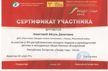 17 апреля 2015 года в «Грант-отеле» г. Казани прошёл финал 13 республиканского конкурса лидеров и руководителей детских и молодёжных общественных объединений Республики Татарстан «Лидер года - 2015». Нашу школу в этом учебном году представляли две участницы: ученица выпускного 11А класса Ахметова Айгуль и ученица 7А класса Елисеева Анастасия. Обе получили дипломы участников престижного лидерского конкурса, привезли с собой массу позитивных впечатлений, новых идей и планов на будущее!