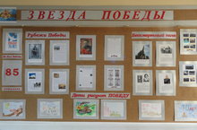 В этом году весь мир и наша страна будут отмечать памятную дату – 70-ю годовщину со дня Великой Победы советского народа в Великой Отечественной войне 1941 – 1945 годов. В нашей школе была создана экспозиция, на стенде которой разместились материалы, посвященные этому святому празднику в жизни каждого гражданина России - рубрики «Календарь Победы», «Рубежи великих сражений», фотовыставка «Бессмертный полк», выставка детского творчества «Дети рисуют Победу».