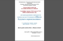 ОРГАНИЗАЦИОННОЕ СОБРАНИЕ ПО ВОПРОСАМ ПОСТУПЛЕНИЯ В «Школу будущего первоклассника».