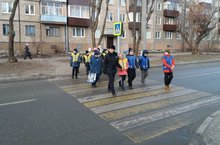 Сегодня инспектором по пропаганде БДД отделения ПБДД ОГИБДД МВД России по г. Казани Валиевой А.З. для учеников 4а класса было проведено практическое занятие по изучению ПДД "Шагающий автобус"