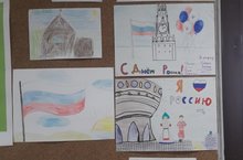 Вот такой "Уголок России" из рисунков ребят появился сегодня на стенде пришкольного лагеря. Вспоминая праздник...