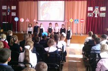 Игра "Светофор!" 16.09.2015 16 сентября в актовом зале прошло мероприятие по ПДД. Учащиеся 1-4-х классов показали свои агитбригады. 1-е место - 4а класс, 2-е место- 1а класс, 3-е место - 2а класс. Победители в конкурсе рисунков по ПДД получили Почетные грамоты.