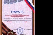 Поздравляем Гайнутдинову Диану, ученицу 8К класса, и научного руководителя Анюхину С.А., классного руководителя 8К класса, за 1-е место в городской научно-практической конференции "Наследники Великой Победы"!