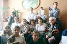 Учитель истории и обществознания, руководитель музея Хайруллина Гульсина Рашидовна и учащиеся 5Б класса поздравили с Днём Победы ветерана Великой Отечественной Войны Лопатину Екатерину Насибулловну.
