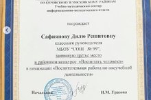 Поздравляем Сафиянову Дилю Решитовну с 3 местом районного этапа городского конкурса ,,Воспитать человека''! Молодец!