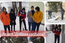 В рамках акции "Добрая суббота" учащиеся 11 А класса сегодня привели в порядок территорию возле памятника Зои Космодемьянской, убрали снег на территории возле спортивного зала.