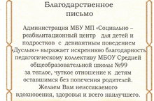 Педагогический коллектив и учащиеся нашей школы не один год плодотворно сотрудничают с МБУ МП "Дуслык". Актив старшеклассников во главе с педагогом-организатором не только учавствуют в мероприятиях центра, но и сами проводят " Уроки доброты" для воспитанников приюта. В рамках акции "Миллион добрых дел" классные руководители со своими учениками собрали и преподнесли в дар детишкам канцтовары, настольные игры и книги.