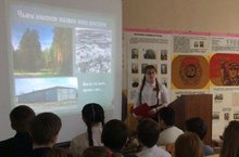 Членв кружка "Юный краевед" под руководством Хайруллиной Г.Р. провели открытй классный час - проект "Символы Великой Победы" для учащихся школы.