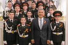 Дню Победы посвящается! 09.05.2018 8 мая кадеты 7к, 8к классов приняли участие в городском мероприятии, посвященном 73-й годовщине Победы в Великой Отечественной войне, которое проходило в театре оперы и балета им. М.Джалиля. Ребят лично поздравил с праздником президент РТ Рустам Нургалиевич Минниханов и сфотографировался с ними на память.