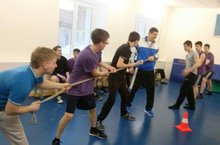Сегодня в школе прошли спортивные соревнования под названием "А ну-ка,парни!" среди юношей 8-9 классов.