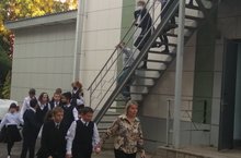 По сигналу тревоги обучающиеся и учителя покинули здание. Расположившись во дворе школы, классные руководители и учителя провели перекличку и доложили директору о полной эвакуации учебного заведения.