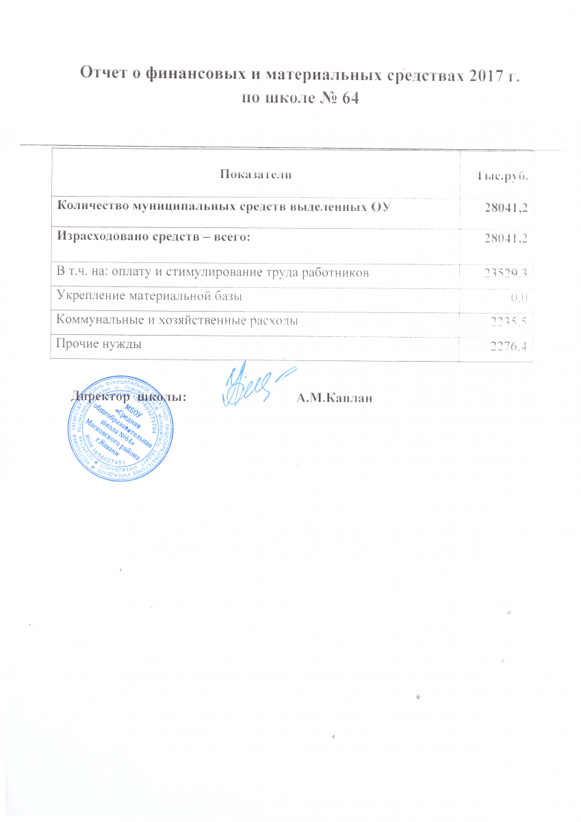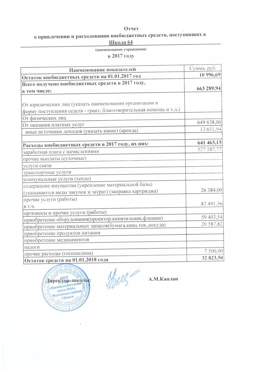 Отчет о поступлении и расходовании финансовых и материальных средств поступивших в 2017 году