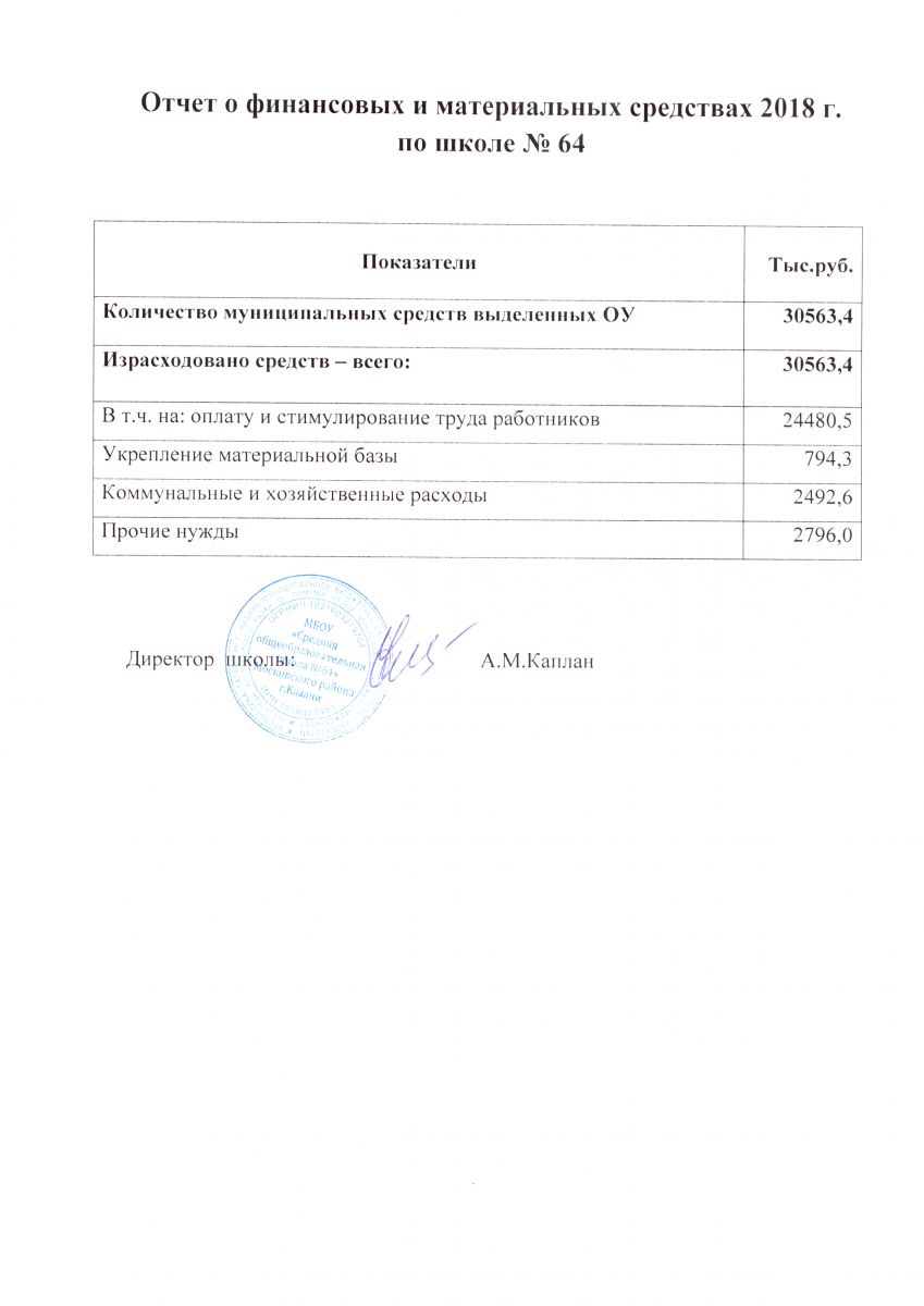 Отчет о финансовых и материальных средствах 2018 г. (Муниципальный бюджет)