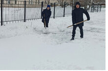Трудовой десант по уборке снега со школьной территории/ Мәктәп территориясеннән кар көрәү буенча хезмәт десанты