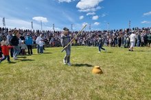 Мәктәптән тыш эшләр үзәге коллективы Сабан туе бәйрәмендә сувенир тәнкә сугу аттракционын оештырды. 12.06.2023