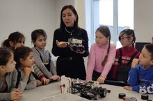 "Мобильләштерелгән робототехника" берләшмәсендә укучылар роботларны футбол уйнарга өйрәттеләр. Дөресрәге пенальти...
