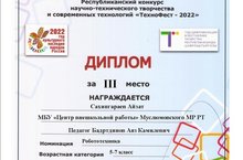 Республикакүләм узган "ТехноФест-2022 " техник иҗат һәм яңа технологияләр конкурсының нәтиҗәләре билгеле булды. 08.12.2022