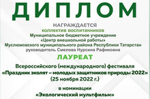 Россиякүләм (халыкара) үткәрелгән "Яшь Эколят- табигатьне саклаучылар бәйрәме" (Праздник Эколят - молодых защитников природы) конкурсының нәтиҗәләре билгеле булды. 14.12.2022