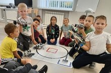 Робототехника түгәрәгендә балалар узләре төзегән роботларны "Сумо" ярышында сынап карадылар. 05.10.2022