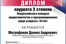 "Станкин" исемле Мәскәү дәүләт технологик университеты оештырган Бөтенрәсәй программалаштыру һәм медиаиҗат буенча "24 bit" конкурсының "2D компьютерная анимация" номинациясендә....