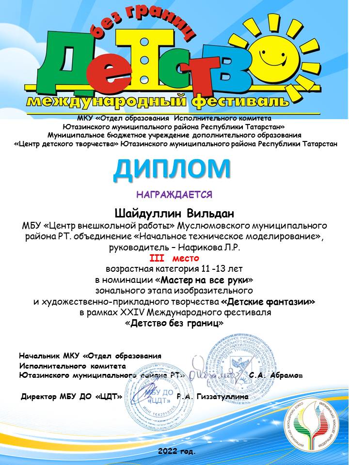 Диплом "Детство без границ" Шайдуллин В.