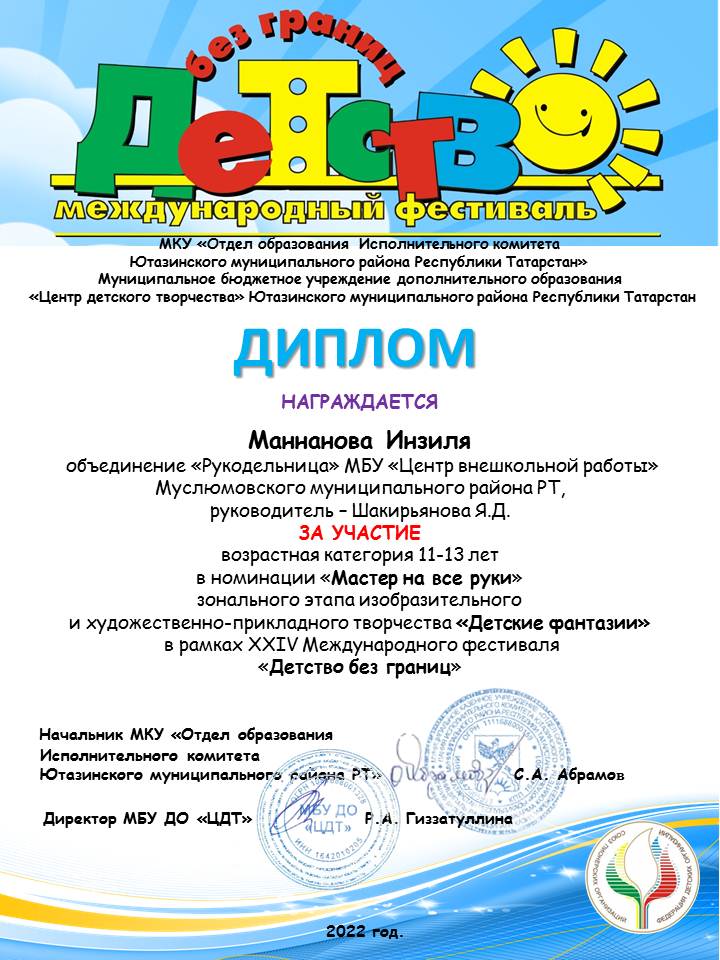 Диплом "Детство без границ" Маннанова И.
