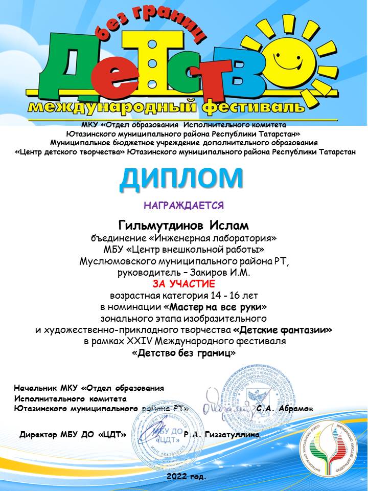 Диплом "Детство без границ" Гильмутдинов И.