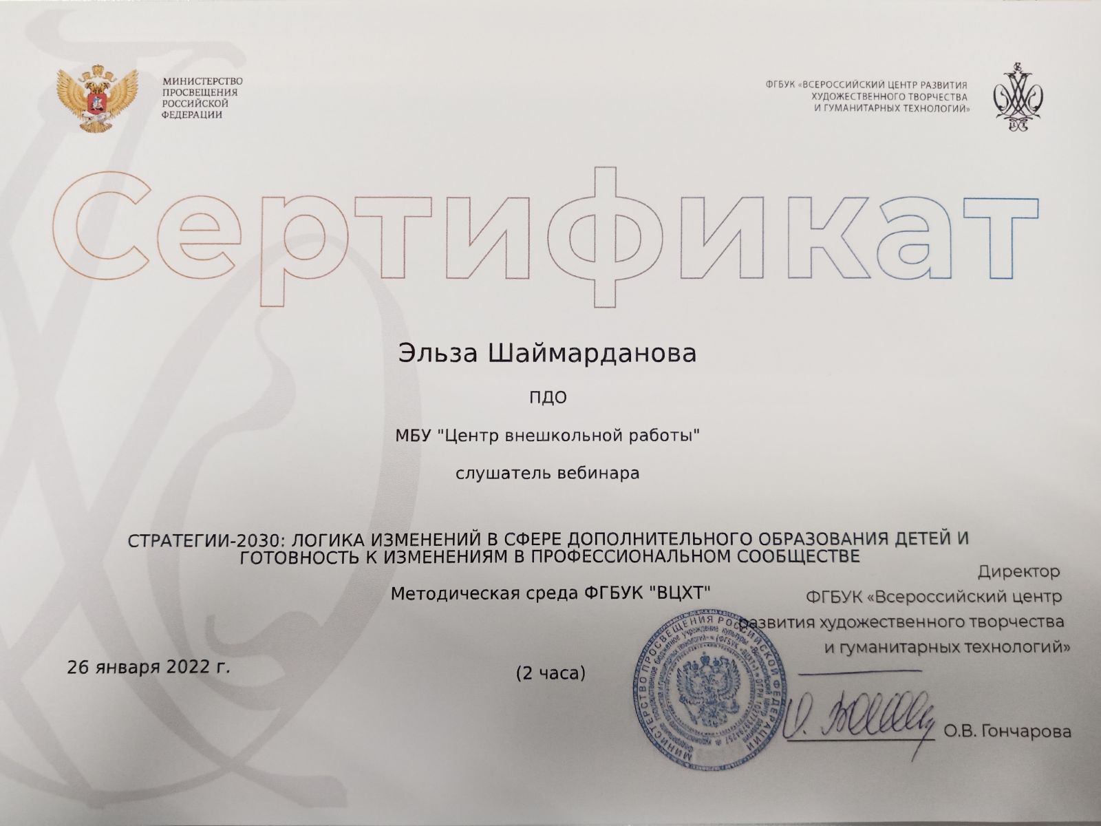 Участие во Всероссийском вебинаре Шаймарданова Э.Д.