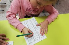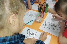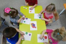 Мослим авылы "Карлыгач" балалар бакчасы мэктэпкэ эзерлек торкеме балалары белэн "Икенче яртысын ясап бетер хэм буя", кунегу балаларнын вак кул моторикасын устерэ, ун хэм сул тошенчэлэрен аерырга ойрэтэ.