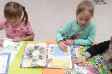 Мөслим "Карлыгач " балалар бакчасының беренче кечкенәләр төркемендә рәсем эшчәнлеге. Балалар акварель буяулар ярдәмендә түгәрәк ясарга өйрәнәләр.