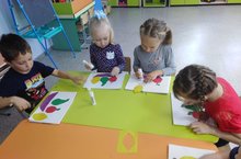 Мөслим "Карлыгач " балалар бакчасының беренче кечкенәләр төркеме. Кисеп ябыштыру "Тәлинкәдә зур һәм кечкенә алмалар ". Балалар түгәрәк предметларны аера белергә һәм ябыштырырга өйрәнделәр.