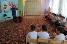 Буген бакчабызга янгын сундеруче Идиятуллин Р. А. килде. Ул балаларны янгын вакытында уз-узенне тоту кагыйдэлэре белэн таныштырды.