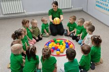 С детьми младшей возрастной группы с помощью различных игр проводили эстафеты.
