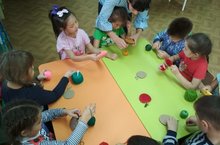 Мәктәпкә әзерлек төркеме, балалар җеп һәм картон кәгазь белән алма ясадылар. Мондый ысул төрле кулламалар белән эшләргә өйрәтә һәм кызыксынуларын тагын да арттыра.