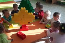 Беренче кечкенәләр төркеме балалары лего-төзү эшчәнлегендә. Агач төрләре белән танышып, лего-конструкторлардан төзеп карыйлар һәм төсләрне ныгыту, моториканы яхшырту өстендә эшлиләр.