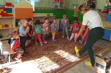 Мөслим авылы "Карлыгач" балалар бакчасы 1 нче кечкенәләр төркемендә музыка эшчәнлеге. Балаларны төрле бию күнегүләре эшләргә өйрәтү. Музыкага карата кызыксыну уяту.