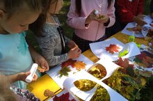 Мөслим авылы "Карлыгач" балалар бакчасы уртанчылар төркеме балалары яфраклар ярдәмендә "Көзге урман - тылсымлы урман" темасына рәсем ясадылар. Бу ысул балаларда табигать белән соклана белү хисләре тәрбияләргә ярдәм итә.