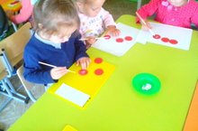 Икенче кечкенәләр төркемендә балалар белән эшчәнлектә түгәрәк формадагы предметлар белән танышуны дәвам итү, ябыштыру алымнарын ныгыту.
