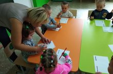 Беренче кечкенәләр төркеме балалары рәсем эшчәнлегендә каләмне дөрес тотарга, өстән аска өзмичә сызыклар сызарга өйрәнделәр.