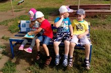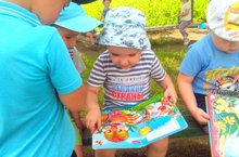 Мөслим авылы"Карлыгач" балалар бакчасының 2 кечкенәләр төркеме балалары саф һавада да үзләре яраткан китапларыннан аерылмыйлар.