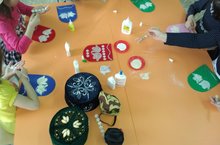 Мөслим авылы "Карлыгач" балалар бакчасы. Уртанчылар төркем балалары, татар халкының милли баш киеме булган калфак - түбәтәй белән танышалар. Балалар, тәрбияче ярдәмендә, бәрхет һәм катыргыдан калфак ясау, милли бизәкләр төшерү серләрен өйрәнәләр.
