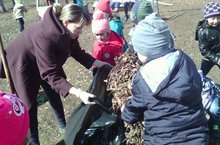 Мөслим районы "Карлыгач" балалар бакчасының уртанчылар төркемендә хезмәт тәрбиясе. Балалар үзләренең уен мәйданчыгын корыган яфраклардан арындыралар, чисталыкка, хезмәткә өйрәнәләр.
