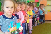"Карлыгач" балалар бакчасы беренче кечкенәләр төркеме балалары предметларның төсләрен танырга һәм атарга өйрәнәләр. Шушы эшчәнлекнең бер төре дидактик күнегү "Паровоз".