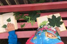 "Карлыгач" балалар бакчасы мәктәпкә әзерлек төркеме балалары "Җәй" исемле лепбук өчен материал туплыйлар. Төрле яфраклар, чәчәкләр җыеп аларны китап битләре арасында киптерәләр.