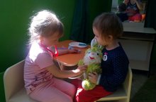 "Карлыгач" балалар бакчасы кечкенәләр төркеме “Хастәханә” сюжетлы- рольле уенын өйрәнәләр. Сюжетле-рольле уеннар туган телне өйрәнүдә бик мөһим урын алып тора. Уен балаларга сүзләрнең дөрес әйтелешен җиңел үзләштерергә булыша.